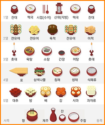 설날 차례상은 열마다 놓여지는 음식의 순서와 차례가 있습니다. 이것을 5열이라고 부릅니다.