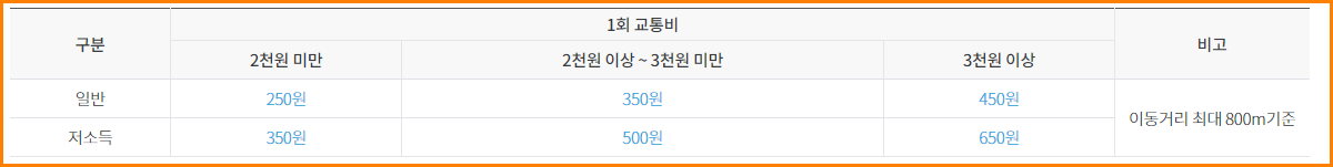800M 미만은 이동거리에 비례하여 지급